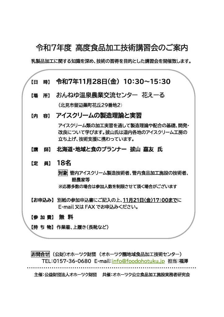 令和7年度高度食品加工技術講習会 参加者募集のお知らせ