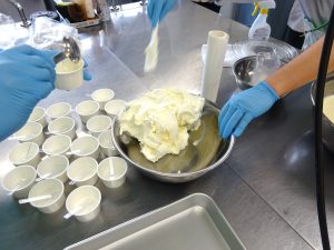 講師に、北海道・地域と食のプランナー 拔山 嘉友氏を迎え、アイスクリーム類の製造及び開発で押さえておきたい知識に関する講義とアイスクリーム類3種の製造実習が行われました。
