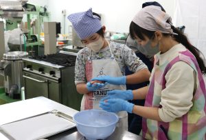 ハンバーグ成形体験 |