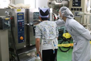 スチームコンベクションオーブンで焼いている様子 |